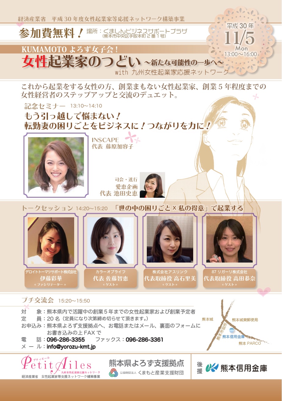 KUMAMOTOよろず女子会 ! 女性起業家のつどいチラシ